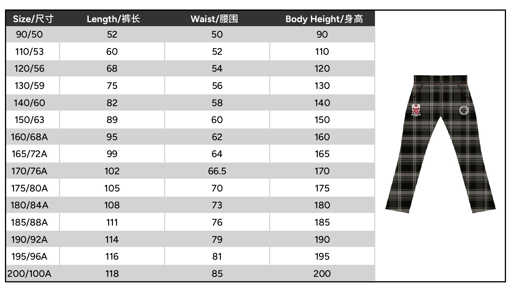 | Size | 90 or 110 or 120 or 130 or 140 or 150 or 160 or 165 or 170 or 175 or 180 or 185 or 190 or 195 or 200 |