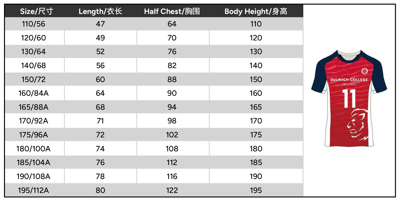 | Size | 110 or 120 or 130 or 140 or 150 or 160 or 165 or 170 or 175 or 180 or 185 or 190 or 195 |